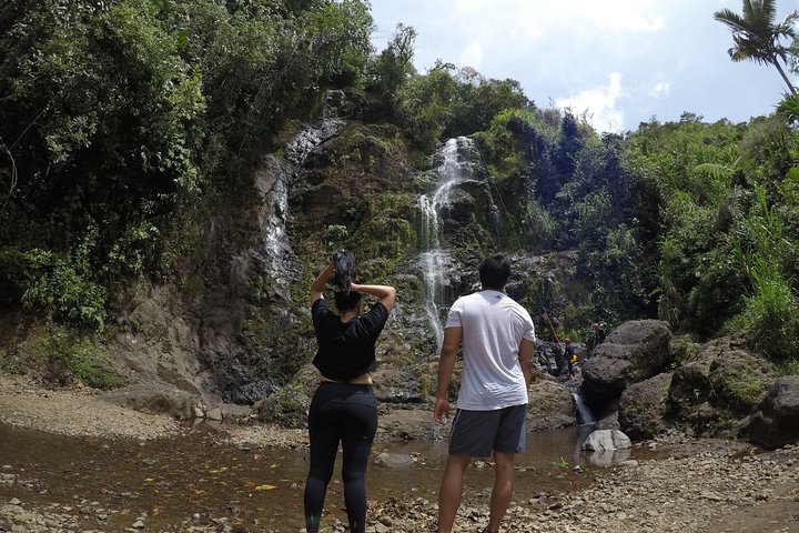 The adventure begins with a scenic journey through the Colombian countryside, where green mountains stretch endlessly and fresh air sets the tone for the day. As you approach La Escalera, anticipation builds, and the sound of waterfalls grows louder, hinting at the thrilling experience ahead.