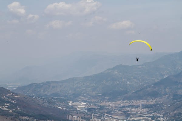 Once everything is set, it’s time for takeoff. With just a few steps forward, you’ll feel the wind lift you gently off the ground, and suddenly, you’ll be soaring through the sky. This tandem paragliding experience allows you to sit comfortably while your professional pilot controls the flight, so no previous experience is needed. As you glide effortlessly above the region, you’ll enjoy unparalleled 360-degree views of Medellín, Bello, and the stunning Aburrá Valley, surrounded by majestic mountains and vibrant landscapes.